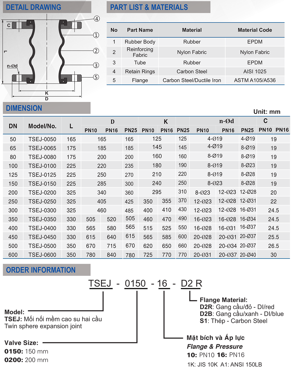 Kích thước: DN50-DN300